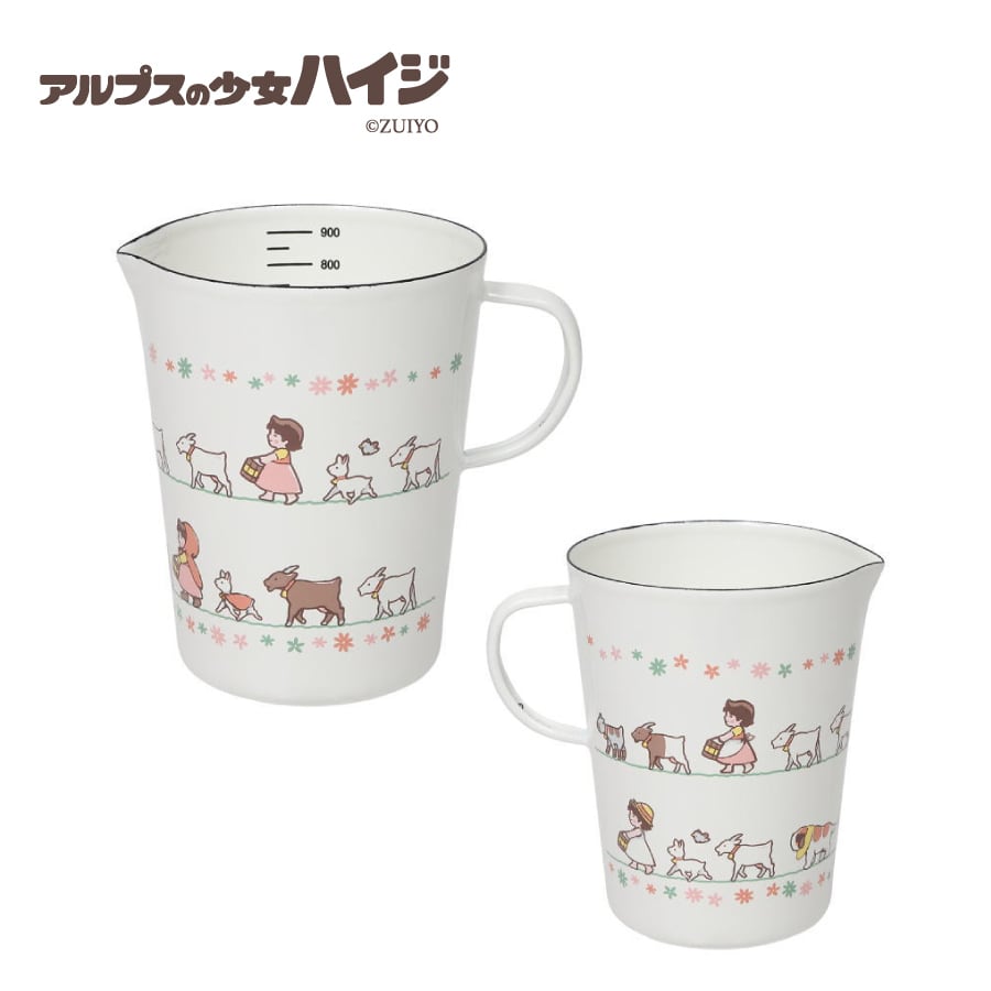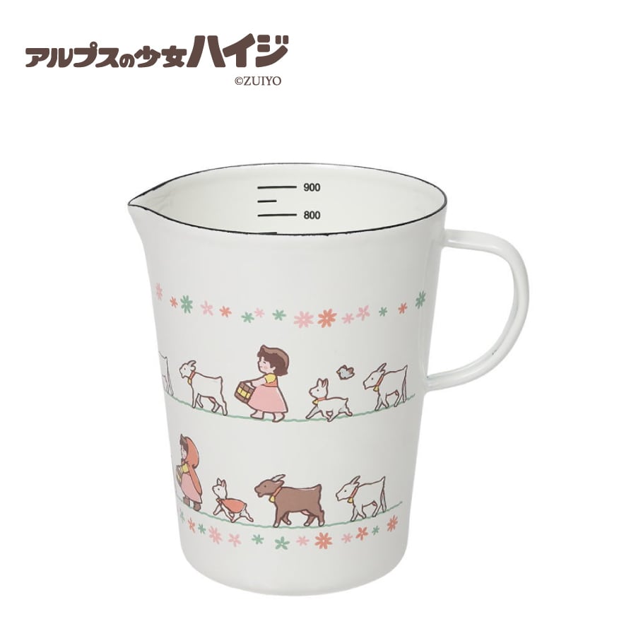 「アルプスの少女ハイジ」ホーローメジャーカップ・L ・HEIDI-08/930ml 計量カップ 大き目 混ぜ合わせ ホーロー 琺瑯 キッチン ドレッシング ソース作り 水差し おしゃれ ギフト かわいい