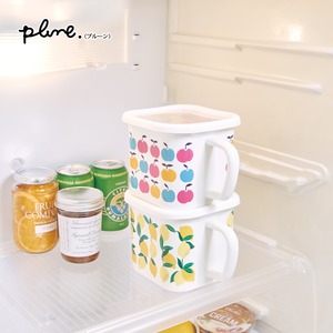 ムダなすき間ができにくい角型形状。持ち手付きなので冷蔵庫などから取り出しやすくなっています。