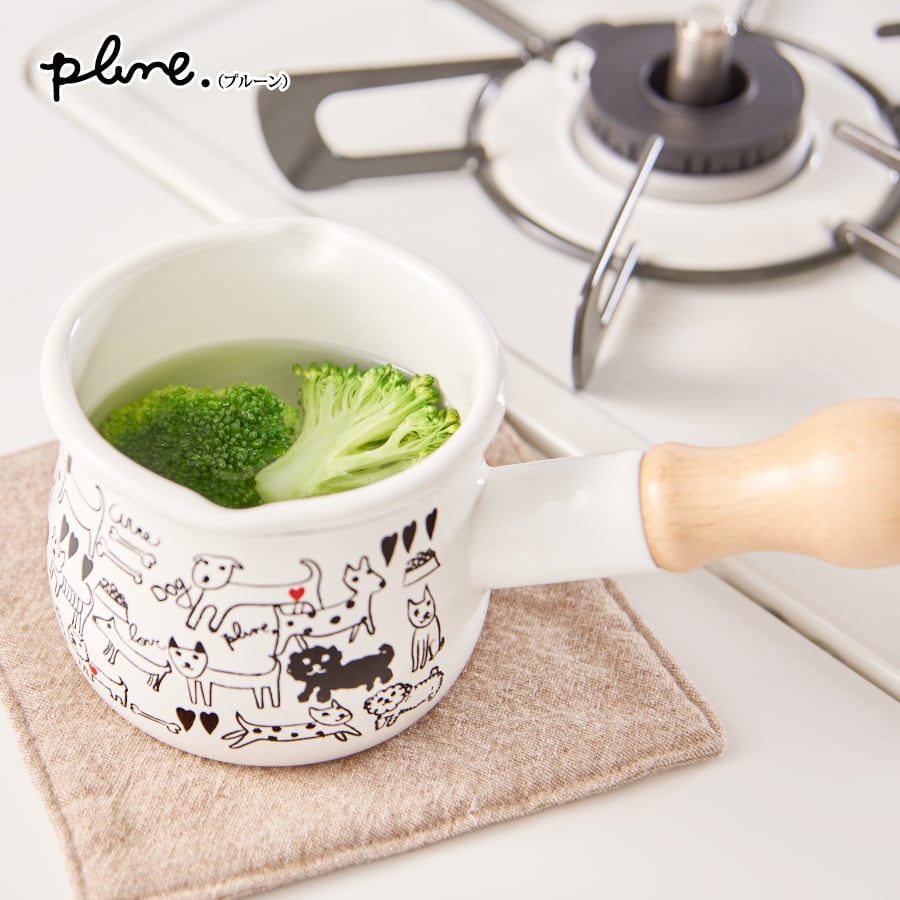プルーン(Plune.)ホーロープチミルクパン 「カラフルキャット」TYJ-722 550ml 小さめ ミニ 直火 片手鍋 ホーロー 琺瑯 ブランド グッズ 木柄 離乳食 ホットミルク かわいい ギフト 北欧風【ガス火専用】
