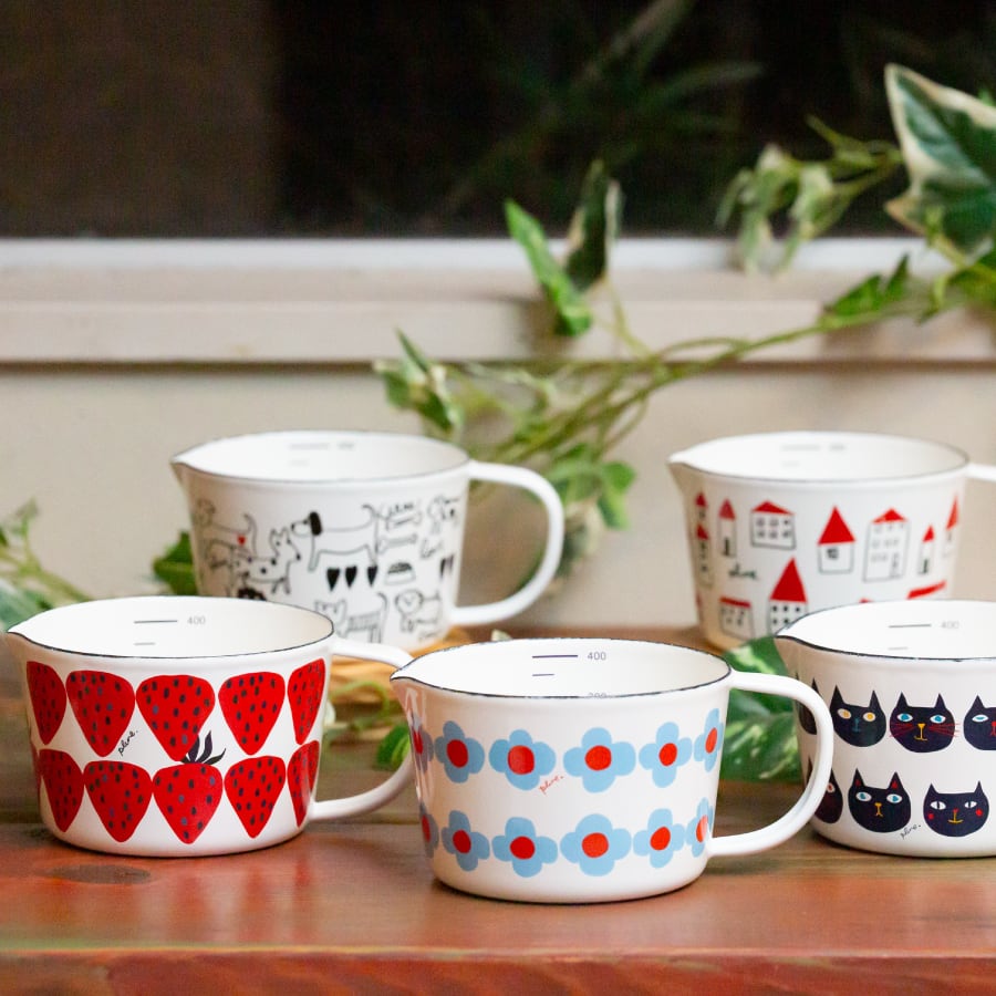 プルーン(Plune.) ホーローメジャーカップ ・S「akaiyaneno」 MC-606 450ml 計量 カップ 目盛り かわいい ボウル 料理 雑貨 北欧 テキスタイルデザイン デザイナー 堀内映子 Plune. ギフト