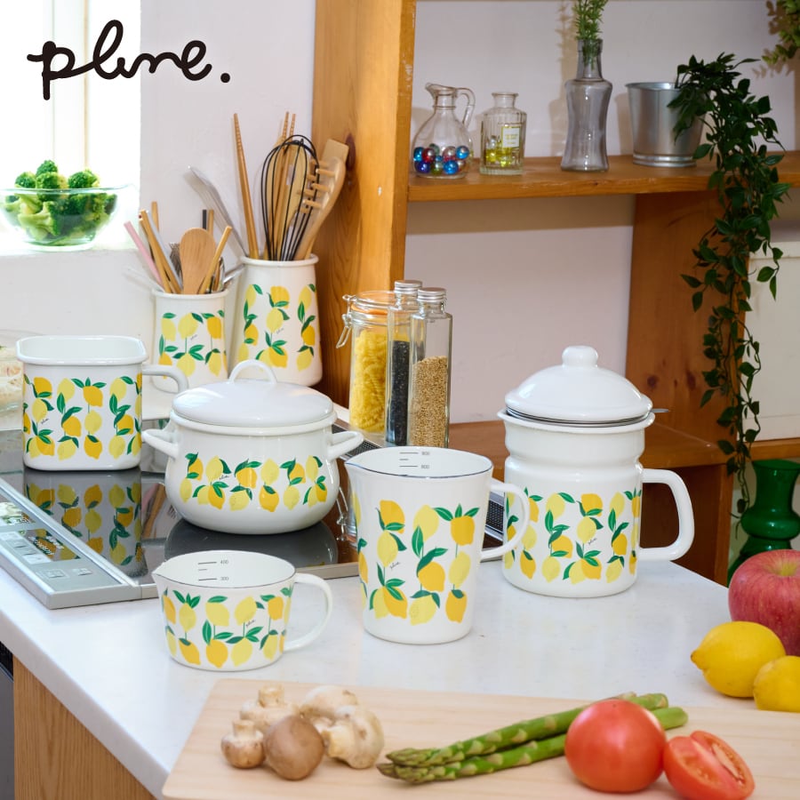 ホーローの美しい色合いと光沢に、プルーンの可愛いデザインが組み合わされキッチンを華やかに彩ります。