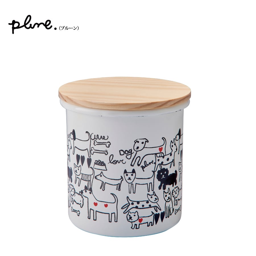 プルーン(Plune.)ホーローキャニスター「モノトーンドッグ」PCA-314 750ml 保存 保存容器 紅茶 珈琲 豆 茶葉 砂糖 塩 ティー コーヒー カフェ シュガー ソルト TEA COFFEE SUGAR SALT STOCK キッチン グッズ 可愛い 【ギフト】 堀内映子 北欧 犬柄 いぬ モノクロ スタイリッシュ アニマル ペット