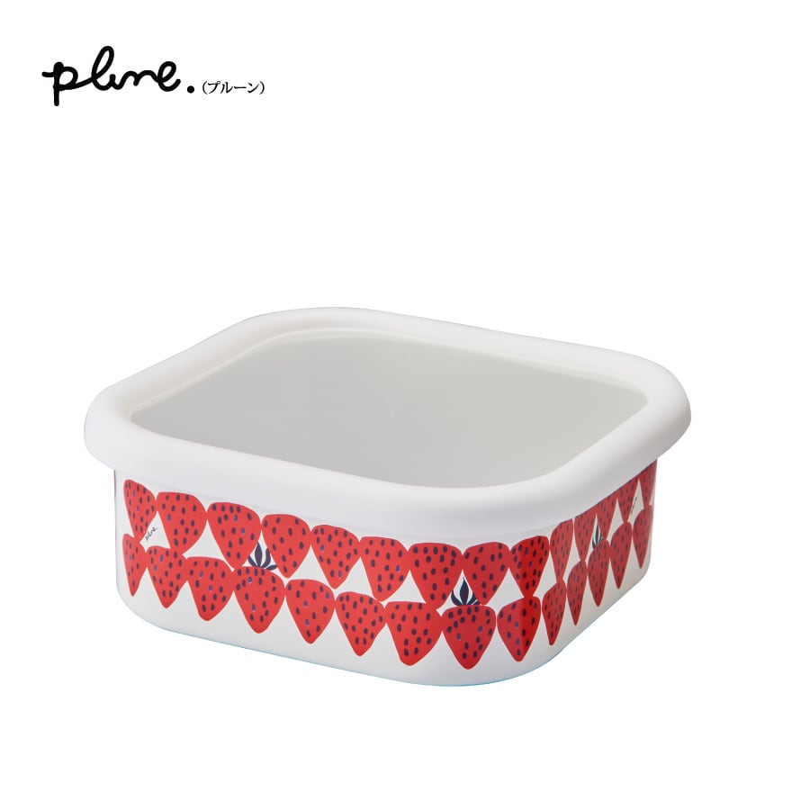 プルーン(Plune.)ホーロースクエアストッカー・L「あかいちご」PSS-401 950ml 保存 冷蔵庫 冷凍庫 保存容器 常備菜 お惣菜 おかず 漬物 琺瑯 キッチン テーブルウェア グッズ 豊琺瑯 可愛い ギフト 堀内映子 北欧 苺 イチゴ ストロベリー フルーツ