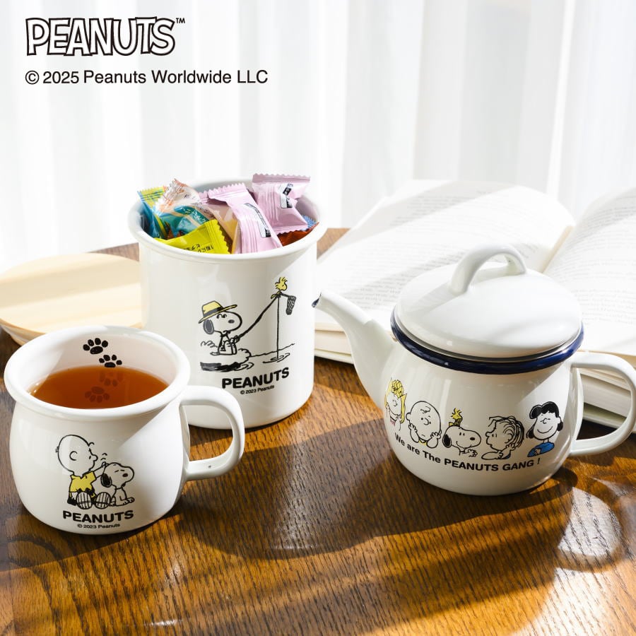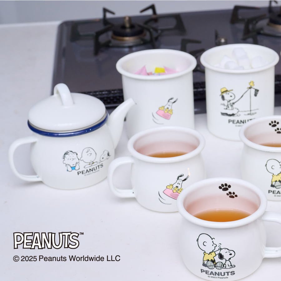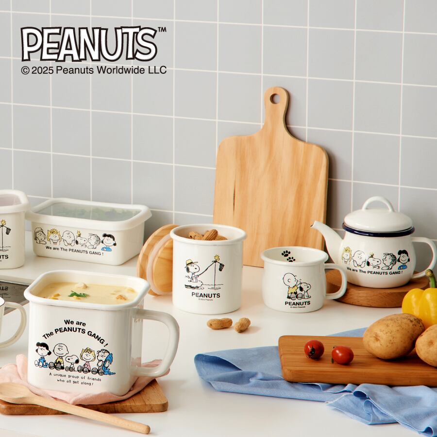 ゆったりとくつろぎムードで和やかな表情をしたスヌーピー&ピーナッツの仲間たち。穏やかな色調で統一されています。シンプルで清潔感のあるホーロー(琺瑯)が暮らしに寄り添います。