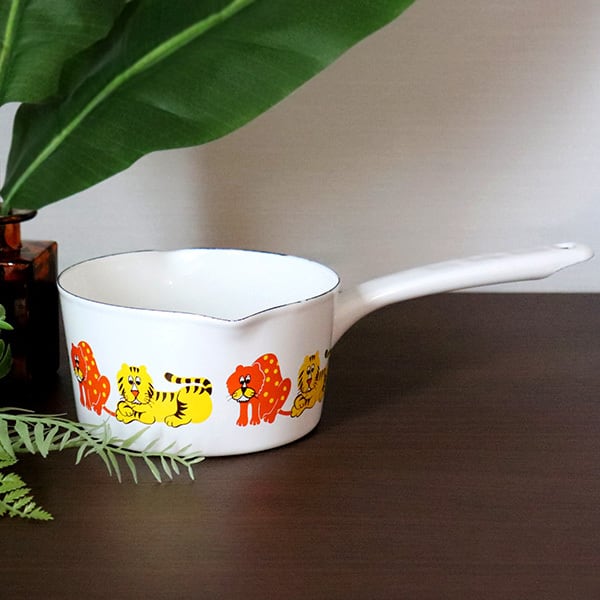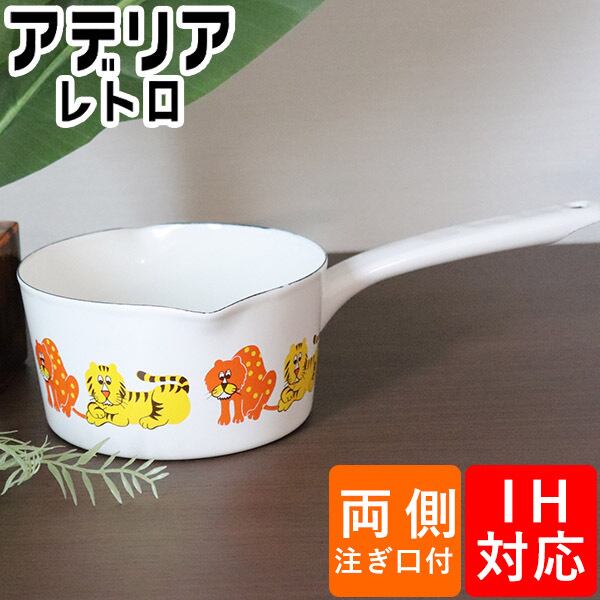 アデリアレトロ ホーロー鍋 ミルクパン15cm「ズーメイト」 (ADR-25) 1.2L 片手鍋 両口 ソースパン 片手鍋 ミニ鍋 味噌汁 離乳食 ジャム スープ ソース ミルク 牛乳 おかゆ ギフト 北欧 雑貨 ホーロー 昭和レトロ かわいい 北欧風 動物 アニマル ポップ イエロー オレンジ ホワイト aderia【ガス火・IH対応】